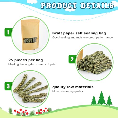 - Sealed Package:Each package is 25 sticks.Guinea pig toys are packed in Kraft paper to ensure that they are dry and can be stored longer.